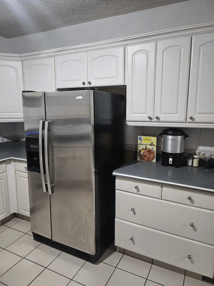 La habitación esta en una Segunda planta y es parte de 3habitaciones mas en esta planta. En la planta de abajo esta la cocina que puede ser usada para cocinar (Se deben de dejar limpio los utensilios usados). También esta una área de juegos con una mesa de pin pon y una sala común con un TV.